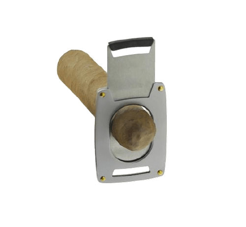Este cortapuros de dos hojas de acero ofrece un corte preciso y limpio, ideal para disfrutar cualquier puro con total comodidad. Su capacidad para cortar hasta cepo 64 lo convierte en una herramienta versátil para distintos formatos. Se presenta con una funda protectora que facilita su transporte y conservación, combinando funcionalidad, resistencia y estilo en un solo accesorio.