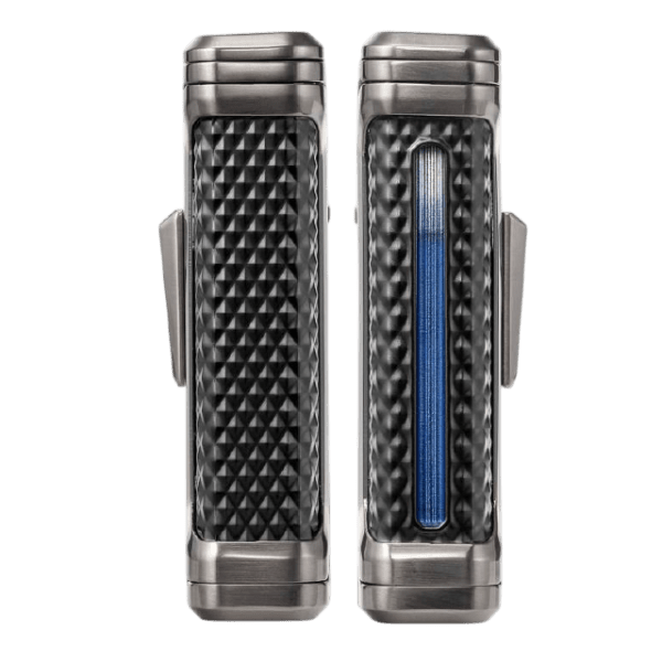 Su acabado metálico de cuerpo completo destaca por su brillo y solidez, reforzando el carácter premium del dispositivo. El encendedor incorpora la ventana de combustible azul Colibri, que permite controlar fácilmente el nivel de butano, junto con un regulador de llama de media rueda situado en la parte frontal para realizar ajustes precisos. Su llama resistente al viento funciona sin esfuerzo incluso en altitudes superiores a 11,000 pies, garantizando rendimiento en cualquier entorno.