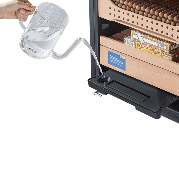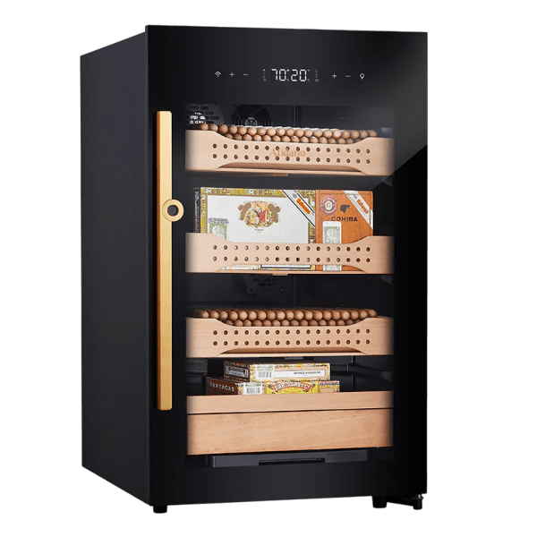 Los humidores de puros Afidano (CH-120AH) están hechos de cedro español y tienen una puerta de vidrio completa equipada con un sistema original de temperatura y humedad constante HPR para brindarle a sus puros un espacio relajado y cómodo para la fermentación. Al mismo tiempo, los humidores de puros Afidano se pueden controlar mediante nuestra propia aplicación. También están equipados con cerradura con huella digital para proteger los puros.