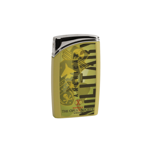 El Fuente The OpusX Society OXS MI J30 Lighter – Freedom/Military es una creación exclusiva de Manny Iriarte, diseñada como un homenaje poderoso y patriótico a las Fuerzas Armadas de los Estados Unidos. Su estética combina el icónico patrón de la bandera estadounidense con tonos inspirados en el camuflaje militar, todo realzado con el distintivo logo de OpusX Society by Manny Iriarte.